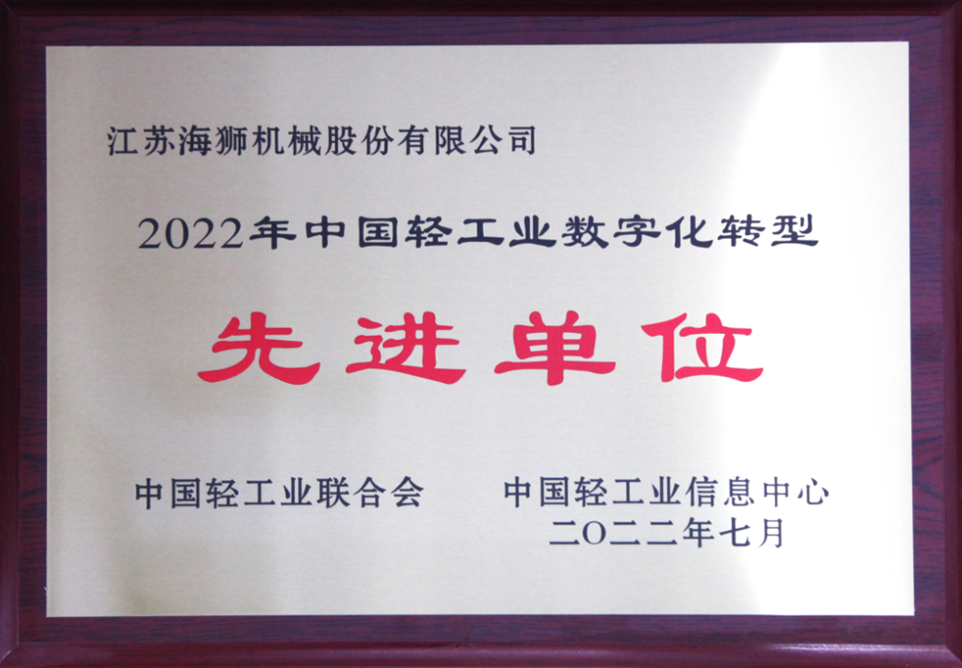 會(huì)上,江蘇海獅機(jī)械股份有限公司榮獲“2022年中國(guó)輕工業(yè)數(shù)字化轉(zhuǎn)型先進(jìn)單位”表彰。江蘇海獅機(jī)械陳宏董事長(zhǎng)榮獲"2022年中國(guó)輕工業(yè)數(shù)字化轉(zhuǎn)型領(lǐng)軍人物?!?/p>