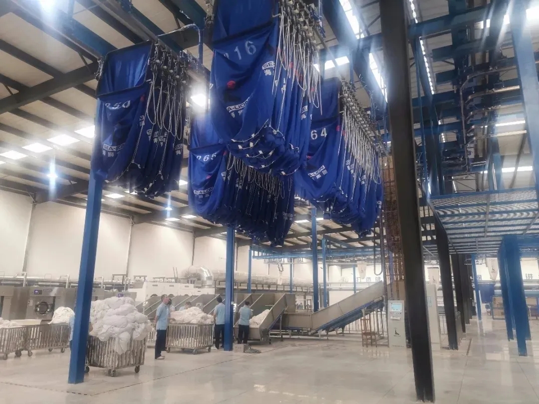 工廠采用了海獅先進(jìn)的洗衣龍、吊袋等設(shè)備,簡(jiǎn)化流程,增強(qiáng)洗滌質(zhì)量,實(shí)現(xiàn)布草抑菌、洗滌100%達(dá)到國(guó)家安全指標(biāo),布草服務(wù)過程100%可溯源,確保每一批布草干凈整潔,保障每一位用戶的健康安全。